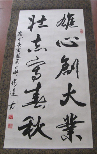 跨入新世纪,曾有幸得京津地区名家指点,心悟技法,上下求索。学书主张:着重基础理论研究与实际应用相结合,走遵古出新,融冶求变,妍美遒劲之路。认为:重在了解诸书体的漫长过程,精在掌握能按法度继承发展,不断增加书法之外多学科之修养。其书法作品先后在区街道工委、区文化局多次展出;代表作品先后在省市国展展出,并在国内一级刊物登载,还题写“鸿世家”专利酒名商标,并发表诗词、科技论文、学术论文等。