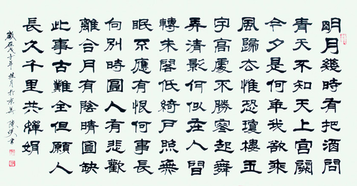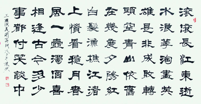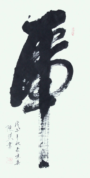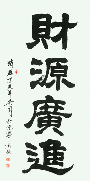 书法偏爱隶书,曾受到已故老中国书法家石岩先生的赏识。在80年代初在绘画方面又受到著名国画大师李苦禅的弟子著名国画家陈雄立先生的亲自指教,受益非浅。在2001年为日本朋友石材株式会社社长根本太郎以中楷写了一幅六尺长文“增广贤文”。受到日方极高的评价和赞誉。2002年开始研究篆书,当年就为密云法制公园正门大理石横碑上以篆书题写了“法制公园序”,以及园内所有巨型石雕园柱。2003年为北京道教题写了六千多字的巨型功德碑,2005年为北京十渡风景区普渡山庄碑序书丹。2008年在奥运火炬传递之前,又为世界遗产周口店广场巨石上题写了“周口店”三个大字,右边七个字“人类文明之脉源”。 |