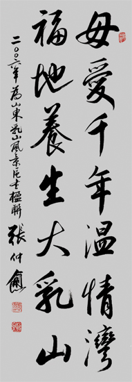 | 简介:1923年3月生,山东省荣成市人。中国书法家协会会员、中国国际名人协会理事。自1948年初始调石岛、青岛外贸局,1952年调中央外贸部。文革后又重操笔墨,70年代始作品参展,84年退休后从事书法教育,担任书画学校校长,中国书画函授大学特聘教授,老年大学、中央多个部委、总参总政、中央党校等单位书法教授。现任中国传统文化促进会主任委员、北京市东城区书协副会长、中国书画函授大学教授等,中国中外名人文化研究会艺术委员会书画师,学术委员,海峡两岸书画联 谊会常务理事,新加坡新神州艺术院特聘高级书画师,高级名誉院士,。近20年来所创作的书画作品(擅写楷、行、草、隶、碑诸多书体,尤以行书为精)。曾参 加过国内外重要展览,全国许多报刊时有作品发表,被收入《中国当代艺术家名人录》、《 中国当代书法家大辞典》、《世界名人录》和多部作品集等辞书10余部。全国性书法赛获 奖。国内外重要馆堂收藏,为碑林写碑,报刊写报头字。曾去台湾和法国海外省留尼旺举 办书画展、大学讲学,均收到高度评价和良好影响。特别在法展览作品抛售一空。出版作品 《行草章法举要》(前后两集)、《怎样临习圣教序》、《行书千字文》、《行楷诸葛亮出 师表》等6种。应法国麒麟友谊会《生活杂志》之邀,撰写《略论中国书法》,近来又写了一 本《草书千字文》。 |
