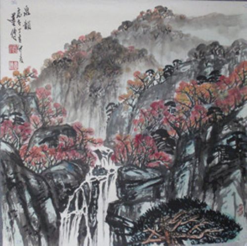 他的绘画、以山水、竹、虾为主,兼习、草虫、花卉。他的画作,蕴藏着我国传统水墨画的精彩,用笔泼辣准确。他为了画山水,除了临古人作品外,主要向大自然学习,为了抓住山河壮美之姿,他徒步游历祖国的名山大川,他笔下的山水,构图饱满,雄劲淋漓。他为画虾、蟹、鱼,他就养虾、蟹、鱼,细心观察,他画出的虾、蟹、鱼,清新典雅,妙态盎然。