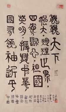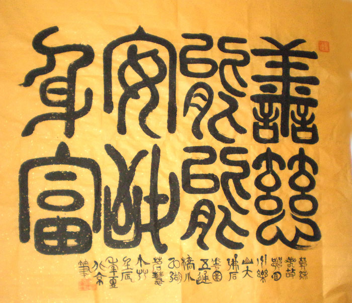 2012年4月23日鹰巢伟业国际文化传媒北京有限公司总裁陈义收藏了我本人,用甲骨文金文创作的福乐寿禧,万事如意一幅作品。另外还特邀请提他公司创作一幅“鹰巢伟业”这样的一幅特别作品。2012年4月28日鹰巢伟业国际文化传媒有限公司董事长,专请我创作“魅力中国”作品并收藏。