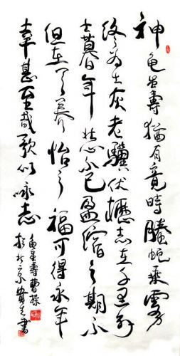 | 简介:汉族,1968年12月26日,湖北省老河口市人。现居北京大兴旧宫,号墨云斎,自幼习书画,受家父影响,善行书深受王羲之、米芾、王铎、孙过庭影响较大,一九八八年开始在武汉美术画院正规培训两年,一直从事文化行业,同年加入市书协、美协。90年参加市梨花节书法展一等奖,93年市政府组织书法活动获奖,96年市药监局组织书法活动获优秀奖,98年在武汉市书法比赛获二等奖,此后多次参加省市大赛,2006年武汉江韵楚风大展获一等奖,获国家、省、市多项书法奖,2011年参加庆祝建党九十周年特邀奖,书法作品多次在报刊杂志发表,作品被众多企事业单位和国内外收藏家及书法爱好者收藏!