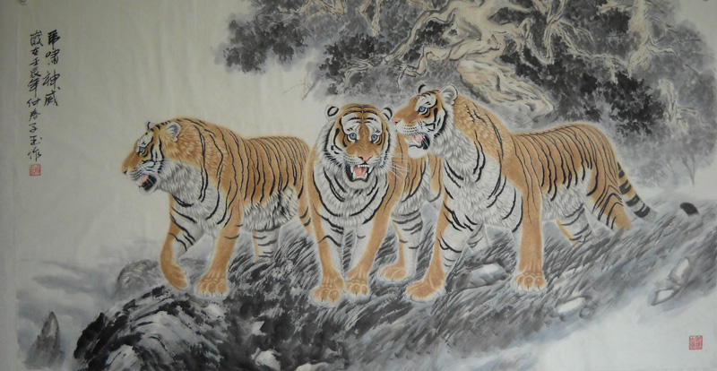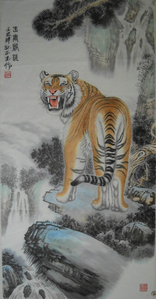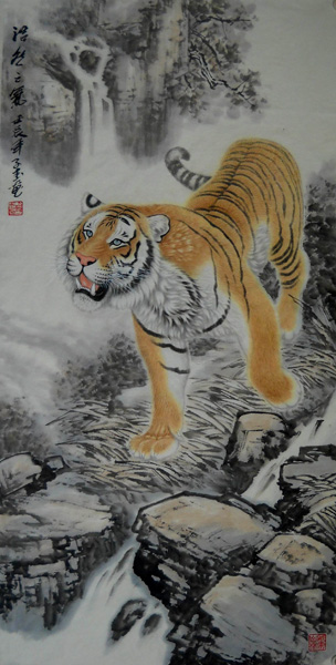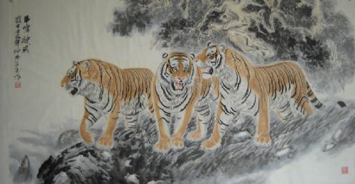 近三十年足迹大江南北,熔炼于名山大川,寄情于乡间野趣,感受、体验、领悟,把自己融化到时代潮流中。写生创作了大量的山水和走兽作品,参加各类书画比赛并获奖,《巍巍太行》、《秋山晨曲》、《幽谷鸣泉》、《雄风》、《王者风范》、《长啸图》等作品先后在香港、新加坡、加拿大等地区和国家展出,大部分作品被国内外人士收藏。艺术风格。师法自然,继承传统,又具有现代特征。构图满而不塞,虚而不空,笔墨洗练而自然,赋色沉稳而典雅,虎的形象生动威武雄壮,写出了山君王者之气和视觉冲击力。 |