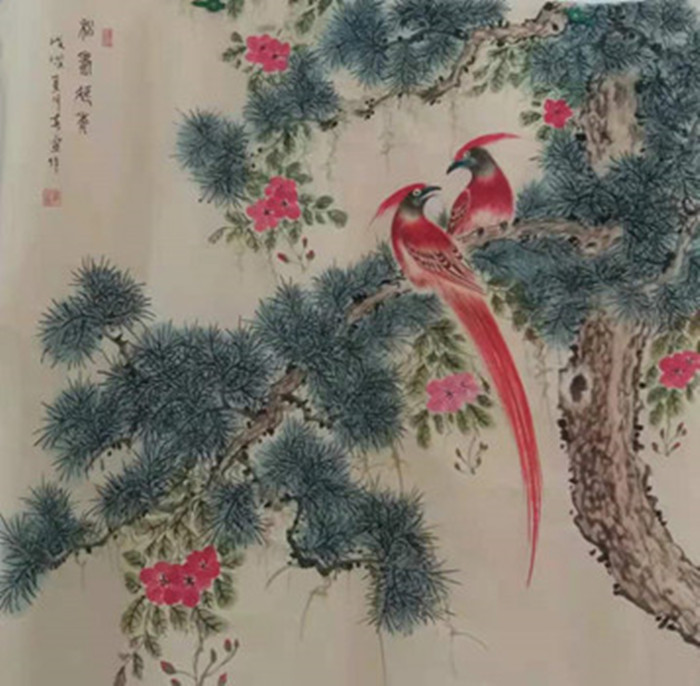 后拜爱新觉罗·溥仙为师,专业研究和学习宫廷花鸟画作,深得恩师的真传,并深受他老人家的喜爱和肯定。