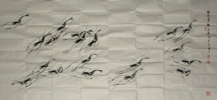 | 简介:1962年生,安徽省界首市人,现居北京。自幼勤奋好学,尤其喜爱绘画,对虾有着特别的情感和兴趣。一有空闲就会专心研究揣摩白石老人画虾的精髓。他不拘泥于白石老人画虾的风格,继而对虾的造型、动态、质感、线条、粗细、用笔顿挫、色泽浓淡、疏密呼应,从虾须和眼、身、尾、触及动感穿梭上创新,似柔实刚、画面生动、立意准确,丰富了画虾的造型艺术。达到形神兼备、笔精墨妙、栩栩如生的高深境界,给人有一种耳目一新、超凡脱俗的感觉。