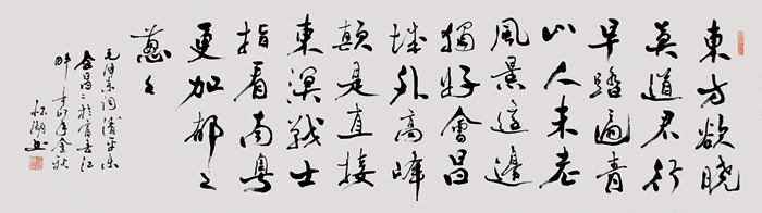 | 简介:杭州桐庐人,1933年12月生,中学高级教师。曾出版书法专集两本,作品入编二十余部书法典籍。2009年文化部文化艺术人才中心编辑出版的《中国书法十大名家》列在沈鹏、熊国英、欧阳中石之后;2010年8月世界知识出版社编辑的《中华文化大使》中,和张海、李刚田等四位中国书协主席、副主席、理事一起入编(此书为中意建立四十周年而出,中美文对照);为庆祝辛亥革命100周年,由中国报纸副刊研究会编辑、中国文史出版社出版的《艺术大师三人行》入编的为沈鹏、欧阳中石两位顶尖的大师和我。作品屡屡获奖。如香港荣归十年书画展中得一等奖;首届金玉杯全国诗书画展中得金奖;北京奥运匹克之旅书展中得优秀奖,并被授予“奥运书画风云人物”称号;上海世博会收藏作品两幅;埃塞俄比亚大使馆聘为“特聘书画师”;庆祝建党90周年暨首届中国红色经典艺术成就奖评选中被评为“特等奖“。有关书画专家和社团认为我的行草别具风格,既很好的继承了传统,又有创新发展,形成了“清丽而不失苍劲,灵动而不失严谨”的显著特色,实用性与艺术性结合,雅俗共赏,因而极具市场潜力,北京奥运期间,被评为“最具市场收藏潜力书画家”。 |