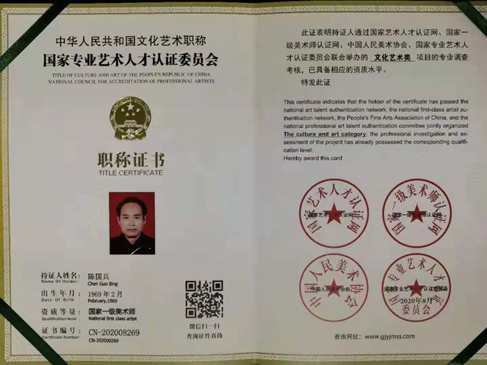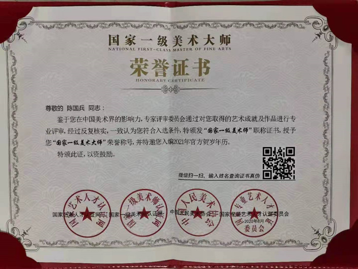 自二十世纪九十年代起,作品在参加中国文联、文化部、农业部、人民画报社、中央电视台等及海外赛展中获奖。作品入编多部大型画册典集,发表在《美术报》、《书法报》、《羲之书画报》等多种报刊上。作品被国内名人纪念馆、书画院、寺庙等收藏。荣获:海峡两岸德艺双馨艺术家、全国当代优秀山水画家、当代书画名家等多项称号。2006年创立个人艺教工作室,致力少儿(含成人)美术培训,尤其是以国画教学为龙头,填补了本地区国画专业教学的空白。个人多次荣获:全国优秀指导教师、园丁、名师等称号。画苑荣获:全国先进文化单位、全国校外特色书画教育百佳、全国书画教育名校(工作室)授牌嘉奖。画苑现为:全国艺术特长生测评中心授权指定机构。 |