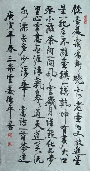 | 简介:男,著名书法家。现任东西方艺术家协会主席、中国诗酒文化协会副会长、诗书画院名誉院长、国际诗书画协会理事、华夏之窗文化研究中心董事长、中国美术家协会荣誉理事、中国艺术中心董事等。现年65岁的娄德平先生致力于东西方艺术的交流活动,自1997年他担任东西方艺术家协会主席以来,他先后成功举办过40多个艺术展览。为弘扬中华民族艺术、促进了中华民族艺术交流、增进东西方艺术家之间的了解和友谊。《世界日报》、《星岛日报》、《侨报》、《名人传记》、《国际中国书画家》等媒体多次报道赞誉他的事迹,作出了极大贡献。 |