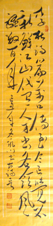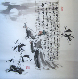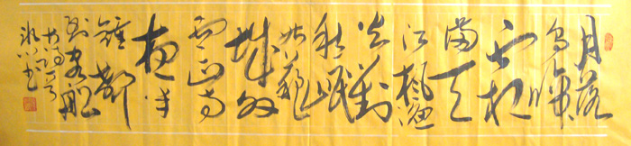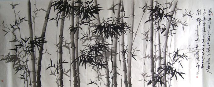 书画在传统笔墨技法很深的基础上有自已独特、大胆的创意,其作品可谓是 “有法无法 、用笔狂放、挥洒自如、雄键有力、气势磅礴、自成一家,特别是墨竹和草书用笔更是纵横挥洒、刚柔相济、淋漓致尽,笔势雄厚如排山倒海一发不可收其线条婉转飘逸,如枯藤绕树、缠绵起伏 ,其点画顿挫抑扬如乱石铺街,险峻跌宏因而显得大气磅礴、生机盎然 。 作品曾被人民大会堂 、中央电视台 、钓鱼台、故宫等及国家领导人、收藏界人士、外国元首收藏送礼。