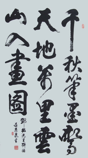 | 简介:1935年生。中国道家书画院院士、京都华厦书画艺术研究院教授兼副院长、中国政协榜书协会会员、中国书协会员。74年国画入选河南省美展,并两次入集出版。95年中外21家艺术院团联合授于“当代书画艺术名人证书”。书法获香港国际画院金奖;北京市文人书画展金奖;中、日、韩三国联展金奖;书法及简历入编香港出版的“世界美术集”、“世界美术家传”、“世界名人录”,“世界艺术家人才大全”等大型内籍,泰国两次邀请交流。特邀为韩国碑林园写碑文。书协副主席刘炳森率团访法,邀请本人为成员。书法作品曾在泰国曼谷、法国巴黎、中国美术馆、钓鱼台国宾馆展出,书法被首图、毛主席纪念堂、文化部收藏,通过文化部ISC艺术质量认证。 |