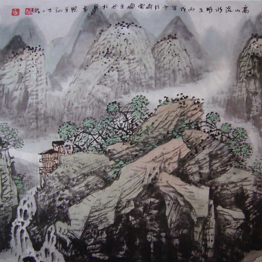 其作品具有浓郁的生活气息,又特别符合中国现代人的审美观念,着力追求境界美,构图美,笔墨美的高度统一。画风庄重严谨、古朴雄厚。